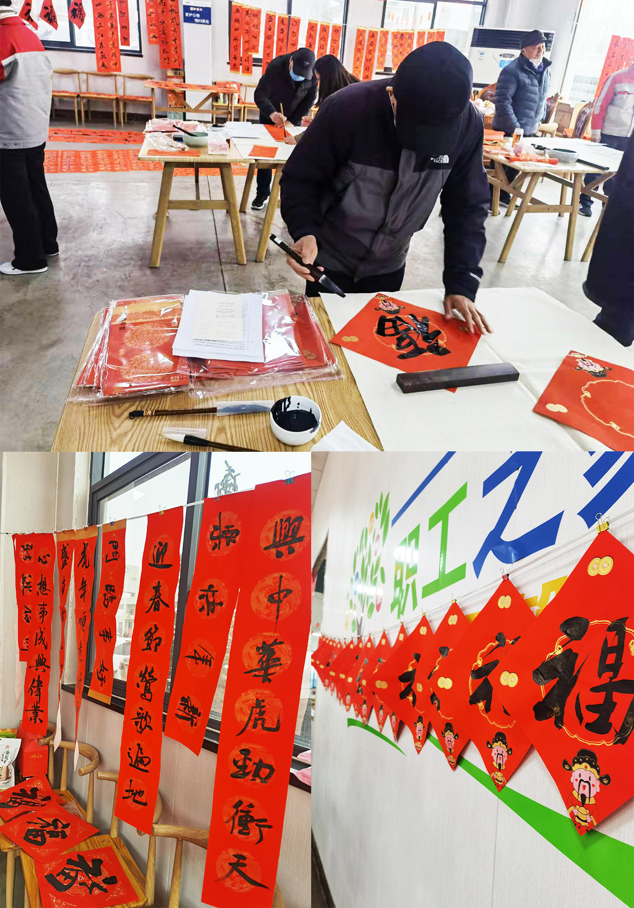 2022年1月12日上午10:00—11:30我公司在食堂大廳舉行“天意、天元星迎新春送春聯(lián)活動(dòng)”,區(qū)文聯(lián)主席及市、區(qū)文聯(lián)書法家蒞臨我公司現(xiàn)場(chǎng)手寫春聯(lián)并贈(zèng)送員工,活動(dòng)現(xiàn)場(chǎng)氣氛熱烈,書法家們將新年的祝福寫進(jìn)了一幅幅春聯(lián)和福字之中,書法家們的作品也受到了在場(chǎng)員工的連連稱贊!紅色喜慶的一幅幅春聯(lián)寓意著新的一年,紅紅火火!
