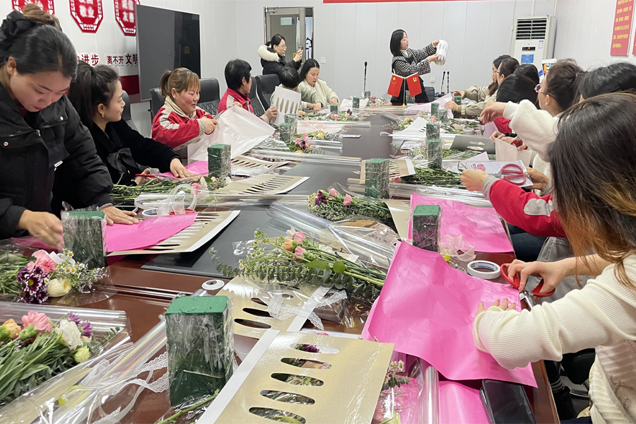 隨著春天的腳步漸近,我們迎來了屬于所有女性的特別日子——三八婦女節(jié)。為營造濃厚的節(jié)日氛圍,提高婦女同胞的獲得感、幸福感和歸屬感,3月8日天元星組織開展了“三月花開女神節(jié),芳華綻放天元星”插花活動。活動中,大家將一束束鮮花、配草鋪在桌面上,一邊享受著花香,一邊構(gòu)思著自己想要設(shè)計的花型。大家從取材、剪葉開始,左手持花,右手持剪刀對鮮花進行修剪,插入花泥中,逐步完成自己的花藝作品。活動當(dāng)天,現(xiàn)場氣氛熱烈而溫馨。專業(yè)的插花老師向大家介紹了各種花卉的特點和插花技巧,學(xué)員們配合著老師開始親自動手嘗試,從一開始的小心翼翼到后來的大膽創(chuàng)意、巧妙搭配,一幅幅造型各異、錯落有致的花束伴隨著陣陣花香呈現(xiàn)在大家的眼前。低語交流,互換花枝,贊美夸贊,無一不透露出此刻的溫馨與放松,欣賞著通過自己雙手制作出來的花藝作品,所有人的臉上洋溢著喜悅的笑容。